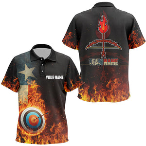 Personalized Texas Flag Flaming Target Archery 3D Polo Shirts For Kids, Fire Arrow Archery Jerseys VHM0990