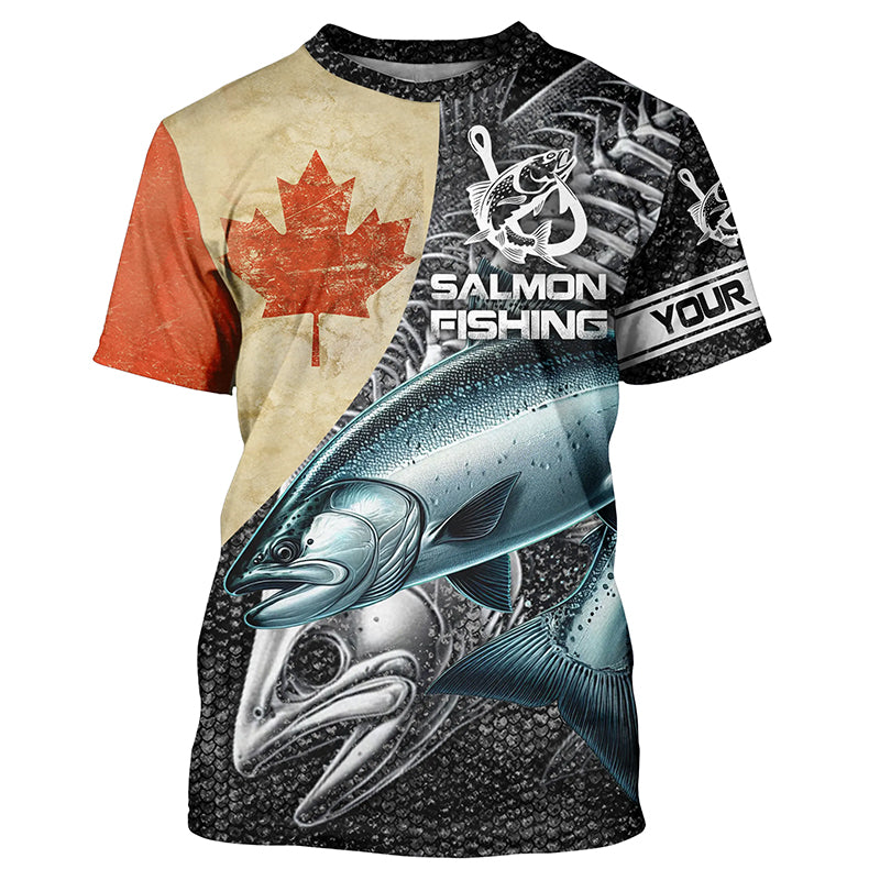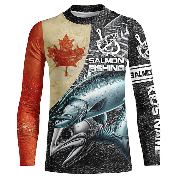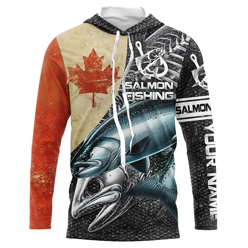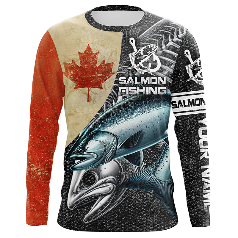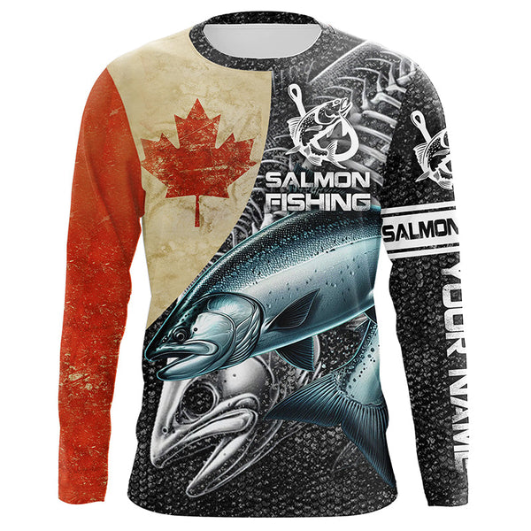 Vintage Canadian Flag Salmon Fishing Custom long sleeve performance Fishing Shirts, Salmon jerseys NQS5334