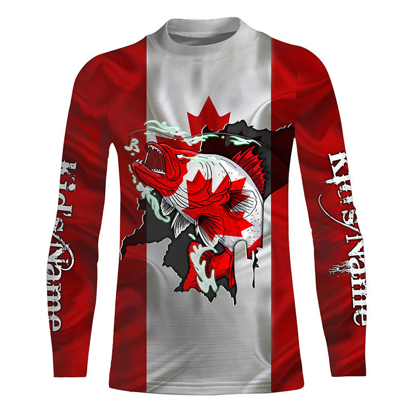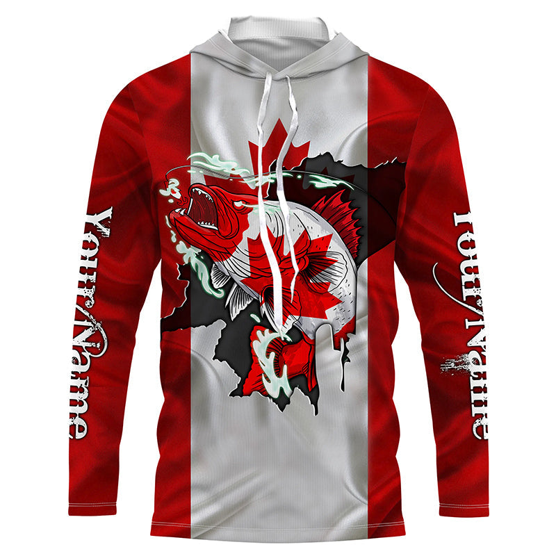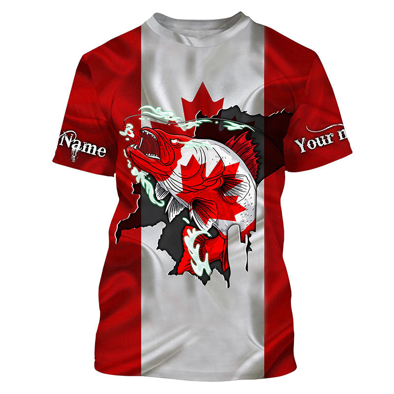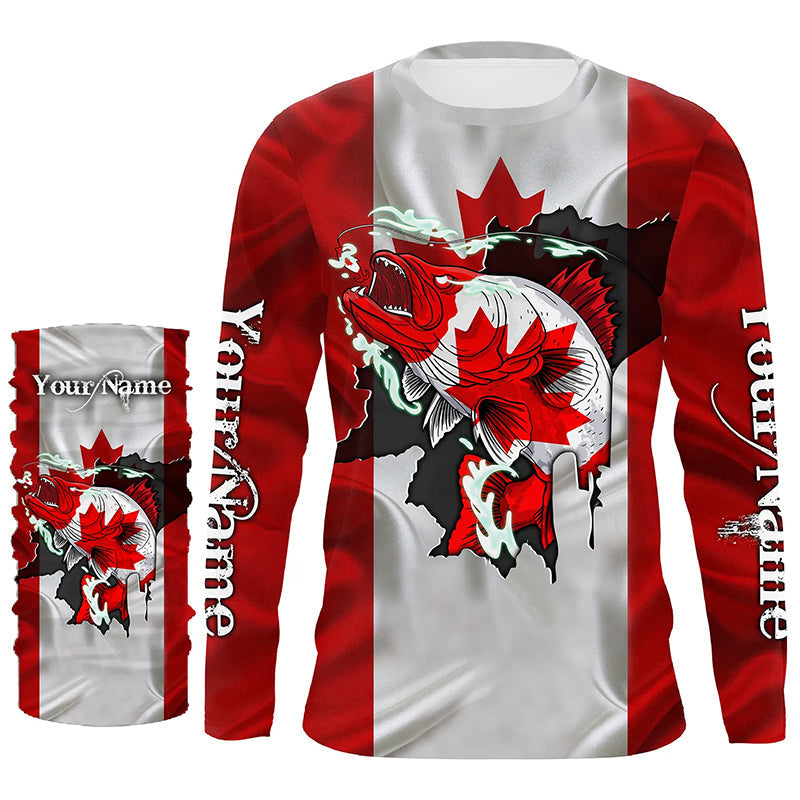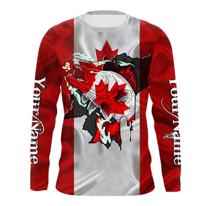Walleye fishing shirts Canadian flag patriot UV protection Customize name long sleeves fishing shirts NQS4567
