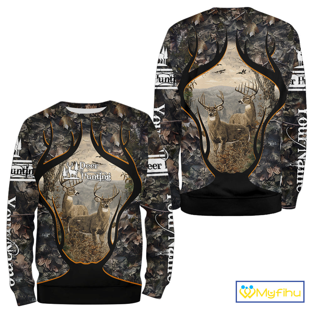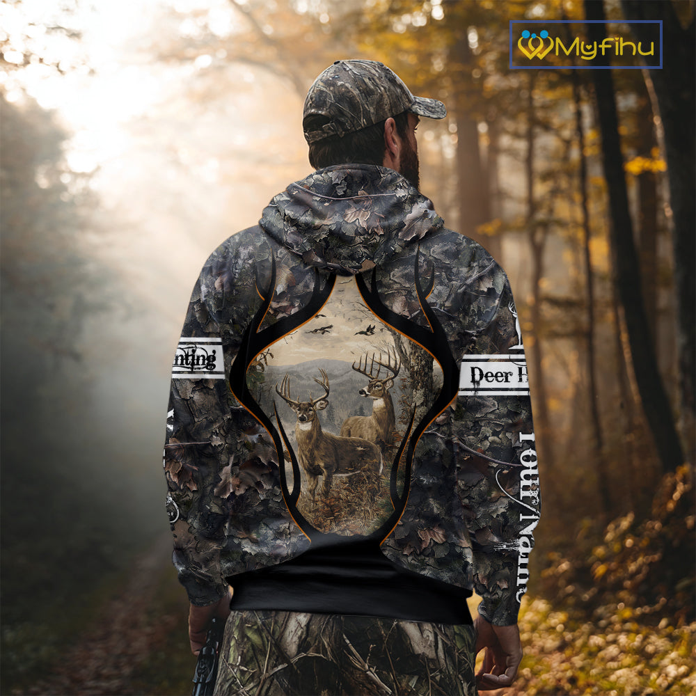 Whitetail Deer Custom Name 3D Printed Long Sleeve Hoodies, Deer Hunting Shirt, Hunting Season NBT304