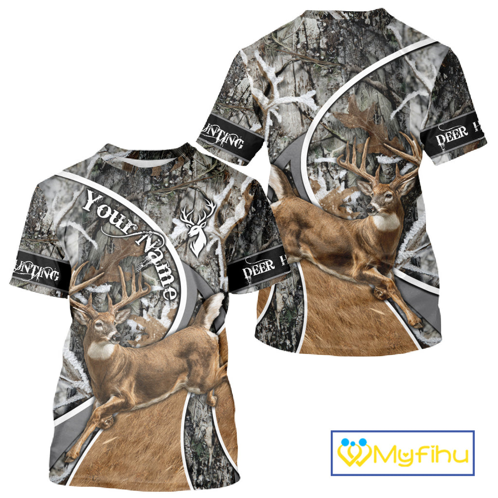 Whitetail Deer Hunting Big Game Shirt 3D All Over Print, Snow Winter Camo, Gift For Hunters NHT173
