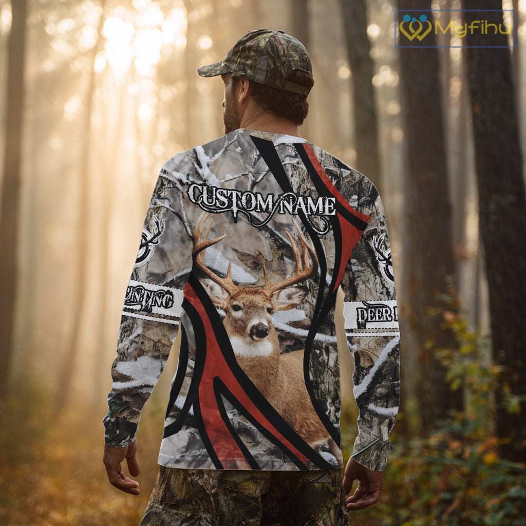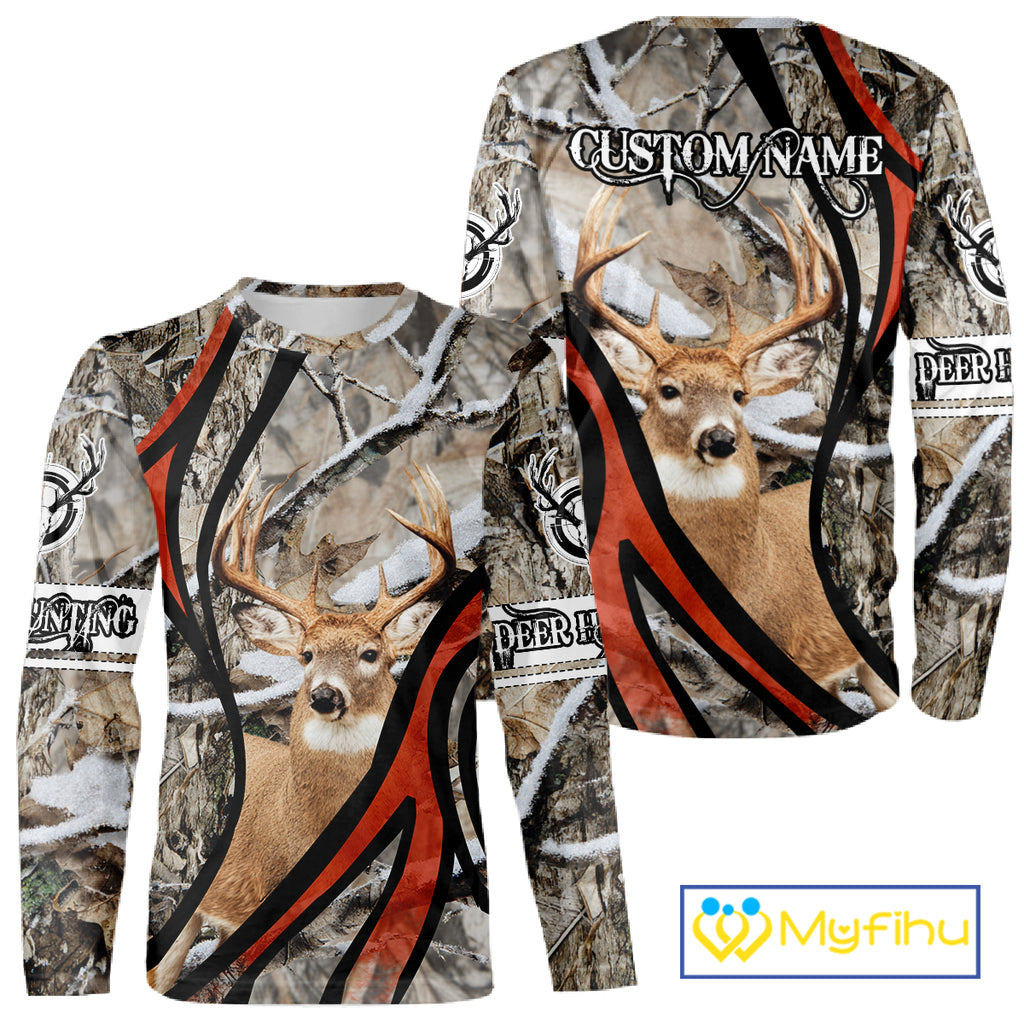 Whitetail Deer Hunting Shirt Custom Name Snow Camo, Season Deer Hunting Clothes For Men NHT80