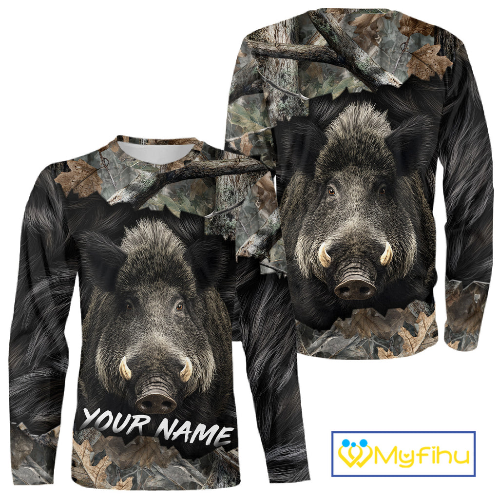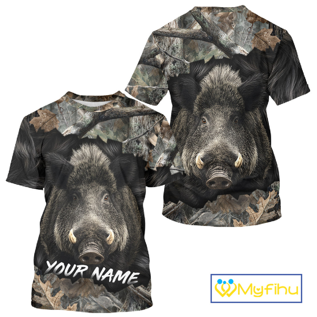 Wild Boar Hunting Black Camouflage Forest 3D Shirt For Hunting Season, Gift For Hunters NHT178
