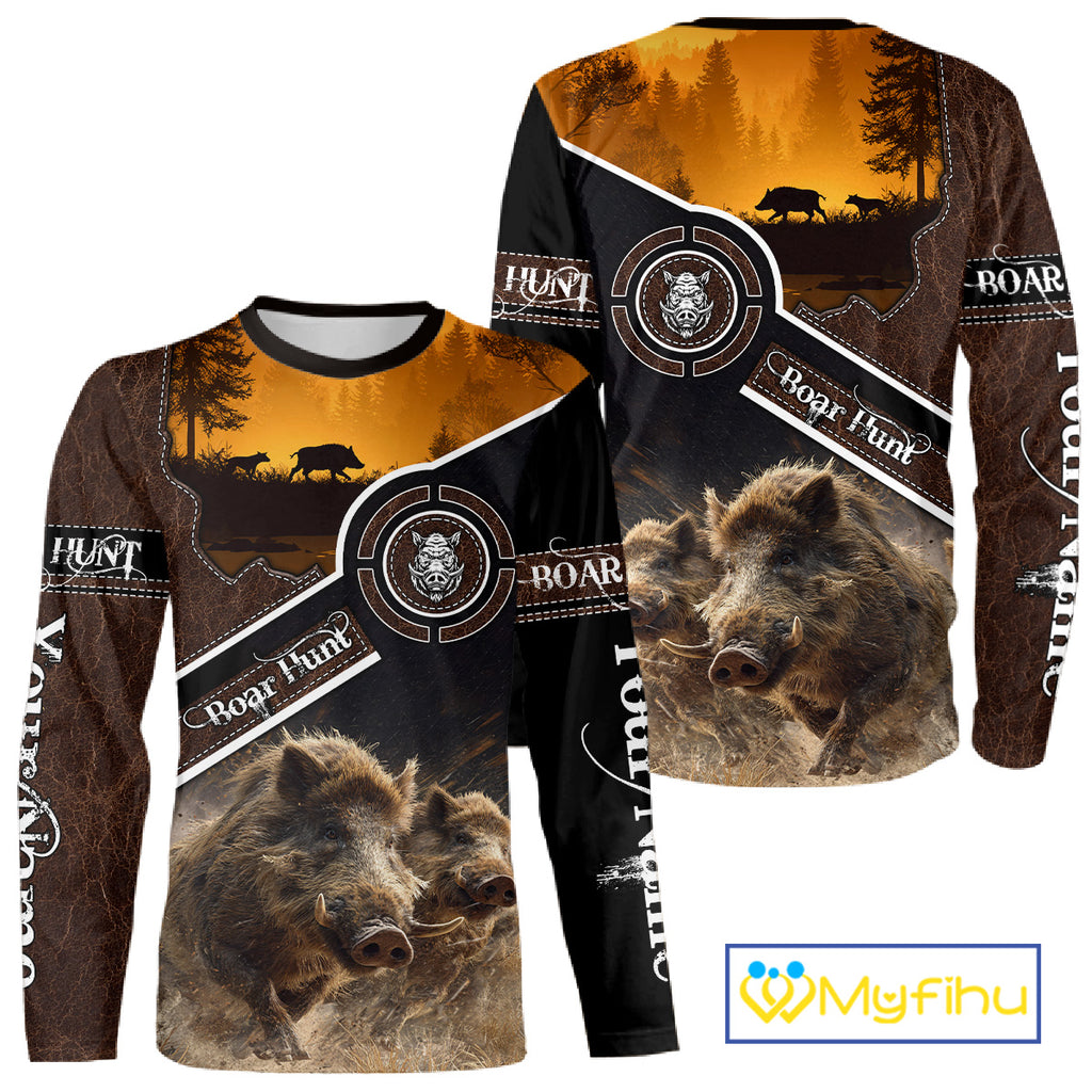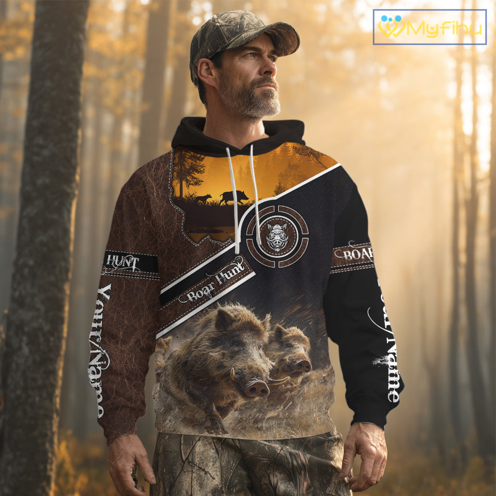 Wild Boar Hunting Leather Pattern Custom Name 3D All Over Printed Shirts Personalized Boar Shirt NBT143