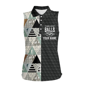 Custom Womens Sleeveless Polo Shirt It Takes A Lot Of Balls Geometric Pattern Golf Gifts For Women LDT1049