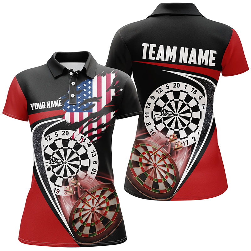 Black Red American Flag Womens Darts Polo Shirt Custom Patriotic Dart Jerseys For Women LDT1386