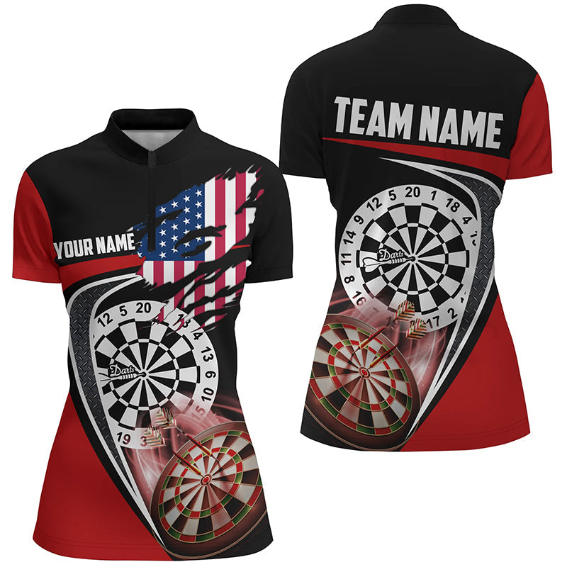 Black Red American Flag Darts Quarter Zip Shirt Custom Patriotic Dart Jerseys For Women LDT1386