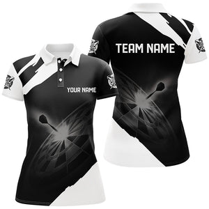 Black White Personalized Womens Darts Polo Shirt Custom Dart Shirts For Women Dart Jerseys LDT1395