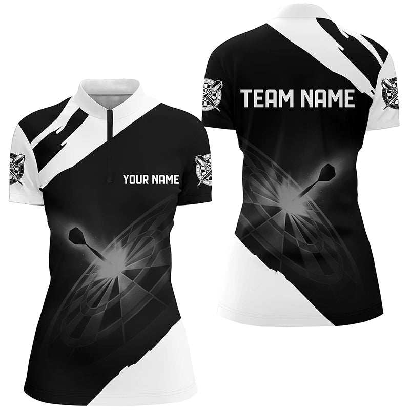 Black White Personalized Darts Quarter Zip Shirt Custom Dart Shirts For Women Dart Jerseys LDT1395