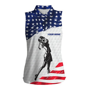 Women sleeveless polo shirt custom name white American flag patriotic golf shirts for women NQS5753
