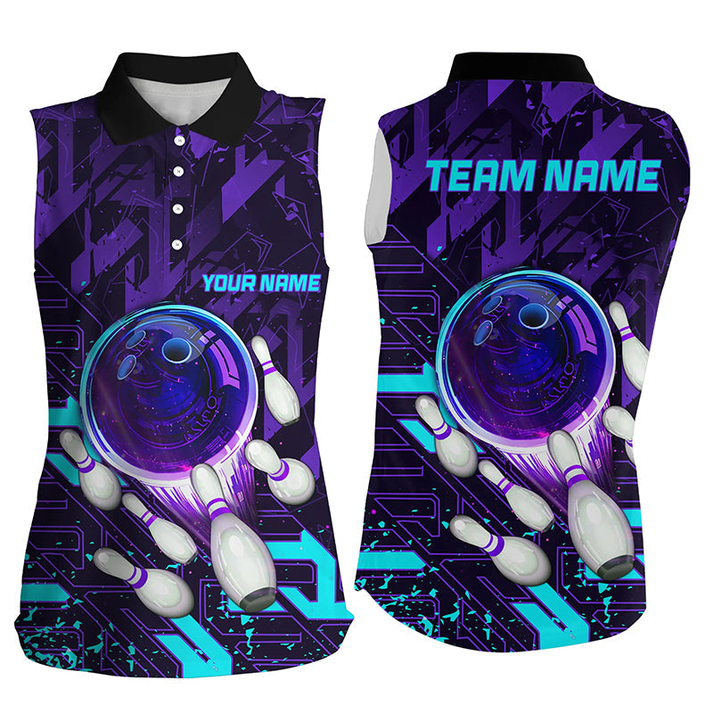 Women sleeveless polo shirts Custom purple blue abstract Bowling Team league Jerseys, bowling gifts NQS7096