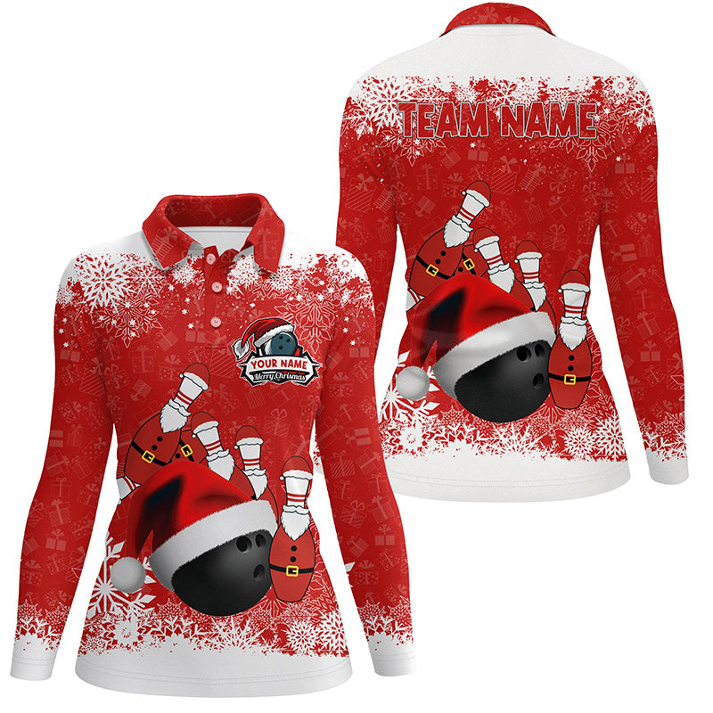 Womens bowling polo shirts Custom Christmas snowflake bowling ball Bowling Team league Jersey NQS6806