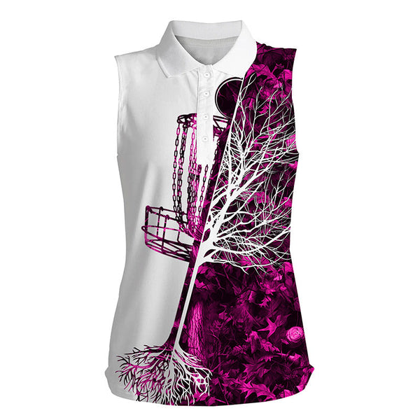Womens disc golf sleeveless polo shirt muti color camo disc golf basket, gifts for disc golf lovers NQS4632