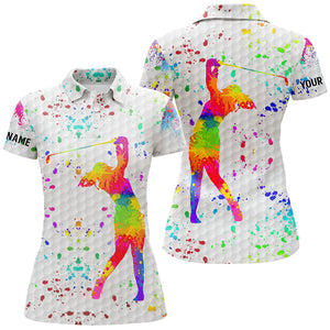 Womens golf polo shirt Custom name watercolor white golf ball, personalized golf gifts for women NQS3593