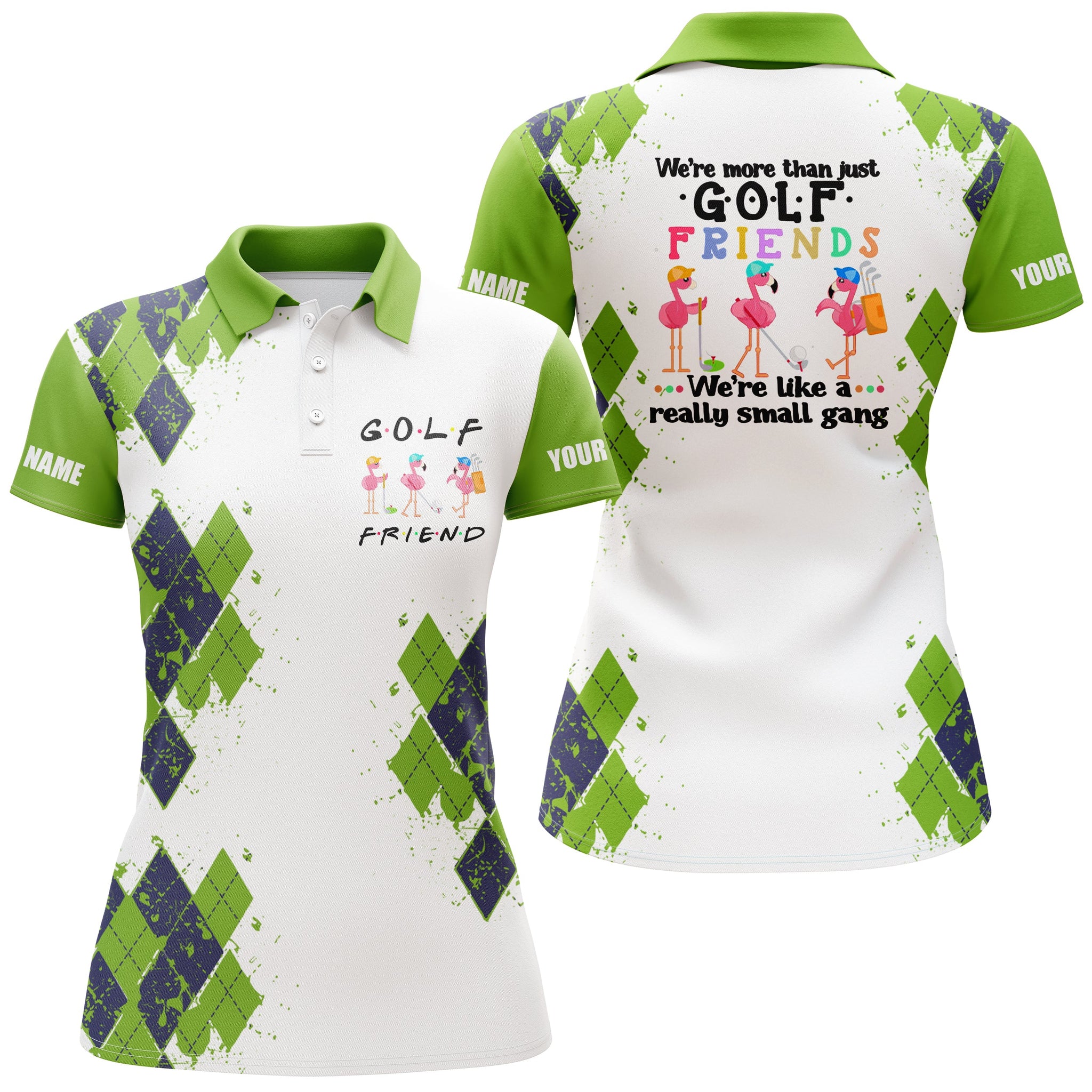 Womens golf polo shirt we're more than just golf friends flamingo custom name funny golf shirt| Green NQS3611