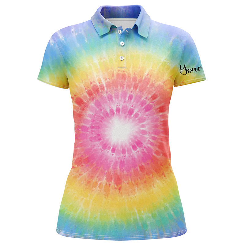 Womens golf polo shirts with rainbow coloured tie dye painted custom name pattern golf shirt for women NQS4660